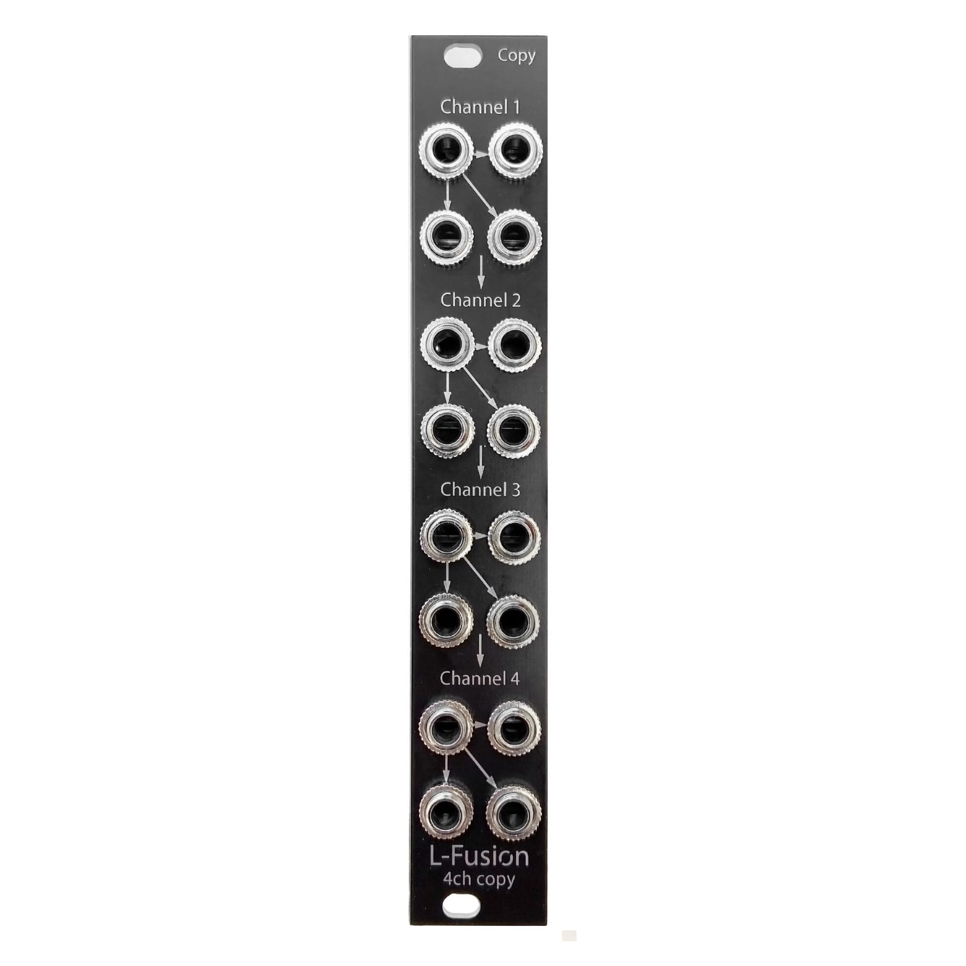 Channels 2 to 4 are wired to receive voltage from previous buffer when nothing is connected to their inputs. Allows daisy chaining 2x to 1 to 6 or 1x – 1 to 12 copies.